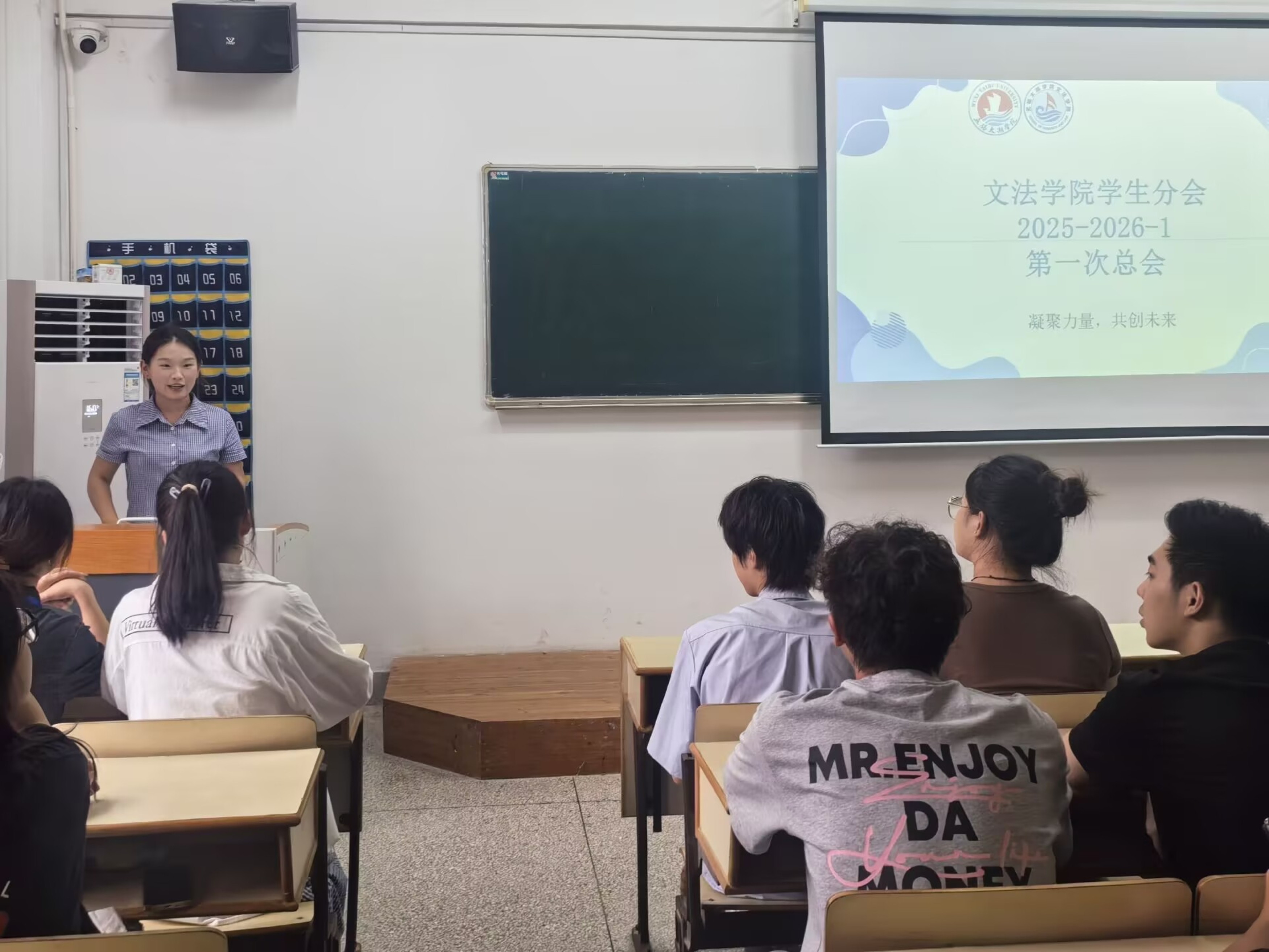 金秋九月,桂香浮动。为擘画新学期学生工作蓝图,凝聚学生分会奋进力量,9月25日,无锡太湖学院文法学院学生分会2025-2026-1第一次总会在8号楼121教室顺利召开。文法学院学生分会主席团、各部门成员齐聚一堂,共同为新学期学生工作谋篇布局。