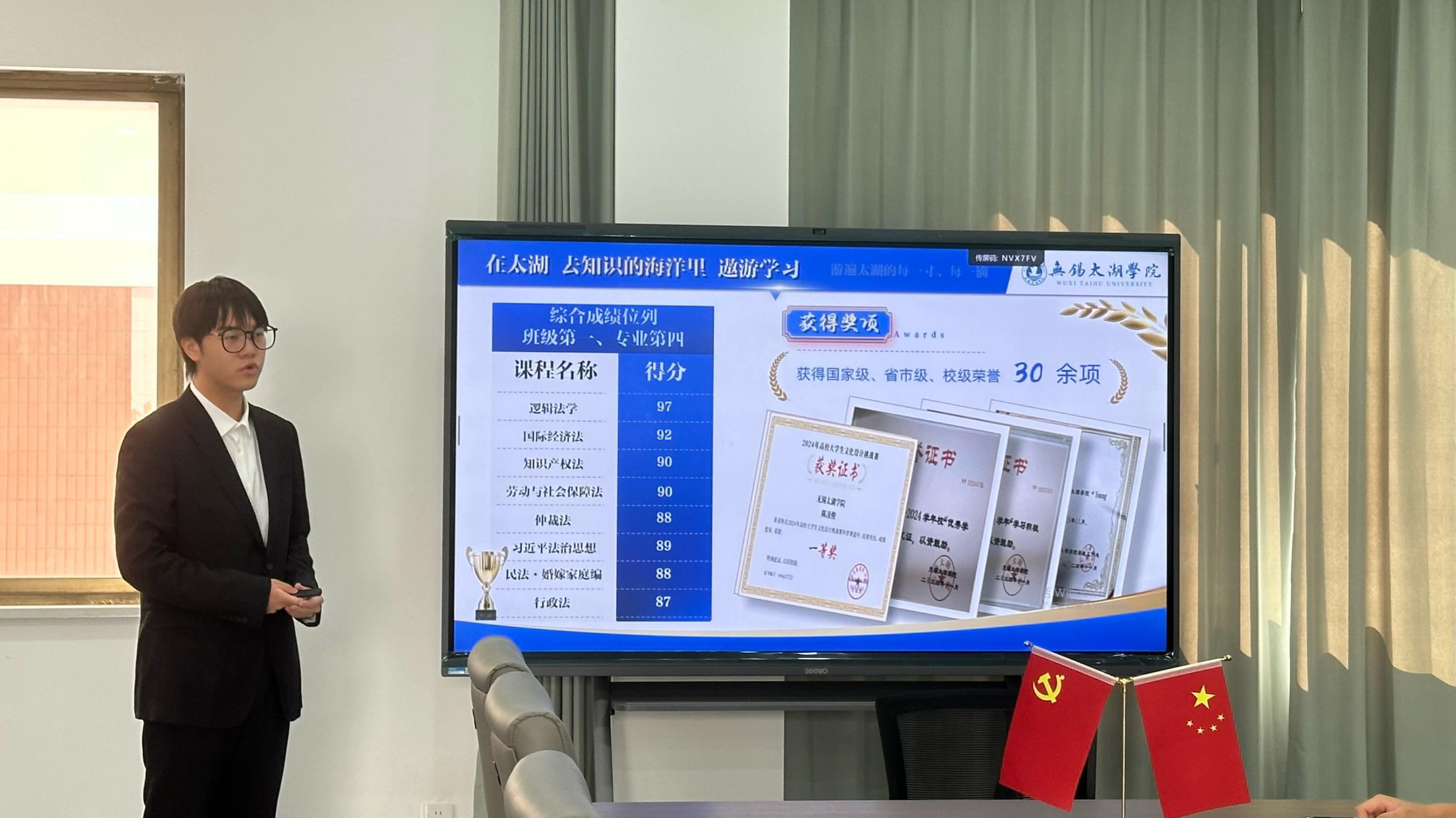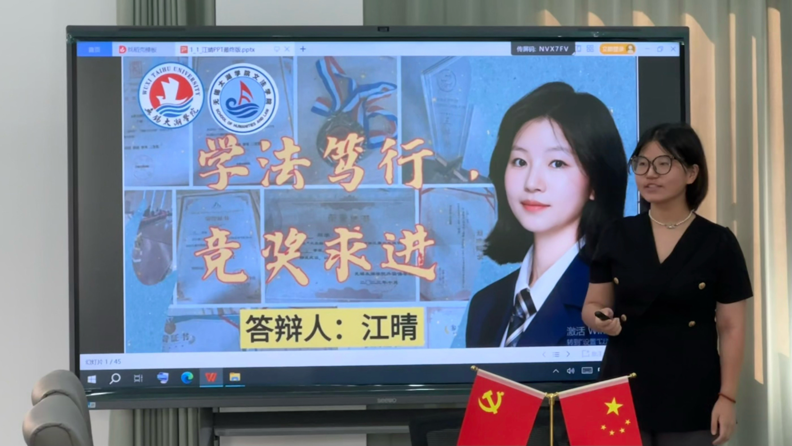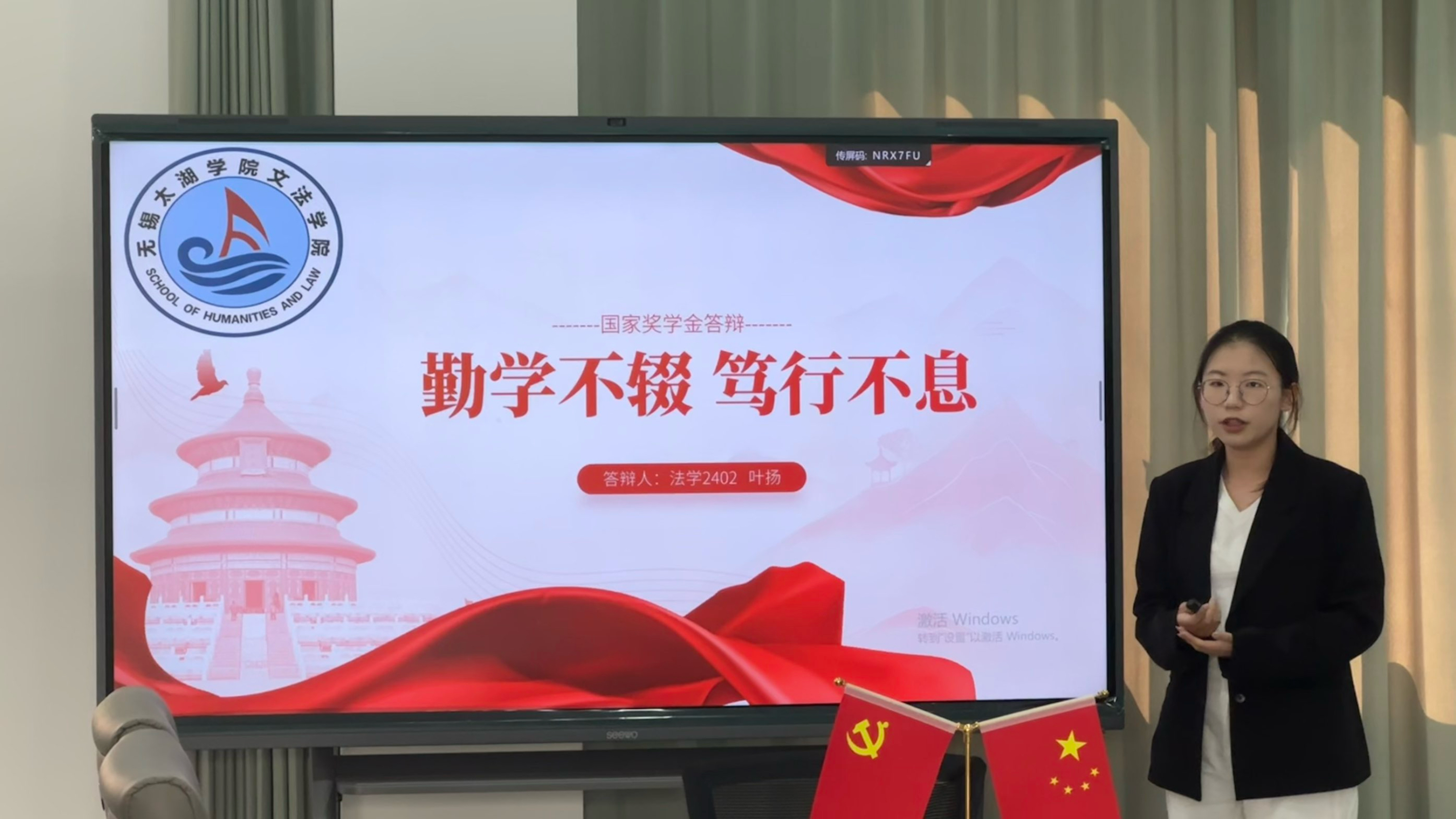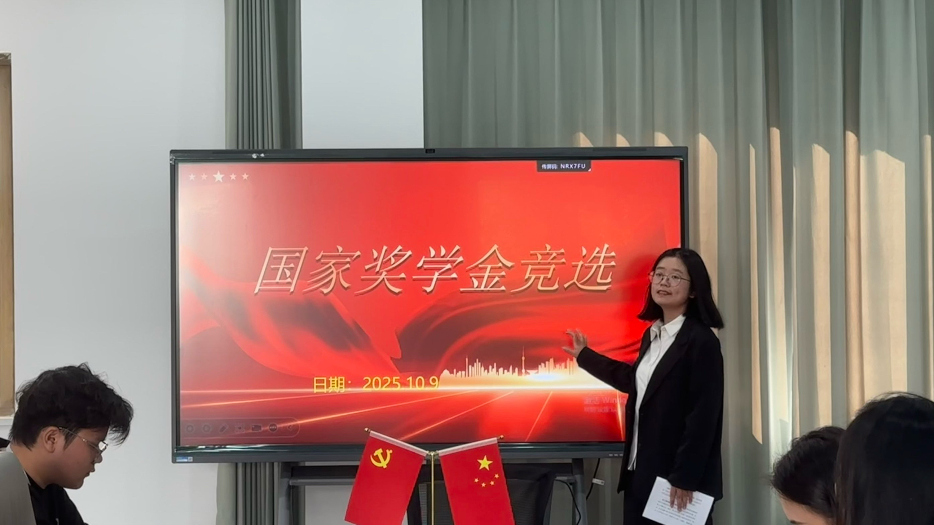 为严格落实国家奖学金评审工作的公平、公正、公开原则,充分发挥国家奖学金的激励导向作用,彰显当代优秀大学生的卓越风采,营造积极向上、见贤思齐的校园文化氛围,无锡太湖学院文法学院2024-2025学年国家奖学金差额评审公开展示会于10月9日下午,在6号楼辅楼211教室顺利举办。本次活动的评审团由24级法学和日语专业辅导员吴樱老师、24级英语、商英、汉语言专业辅导员周佳妮老师共同组成,对候选人进行评审。