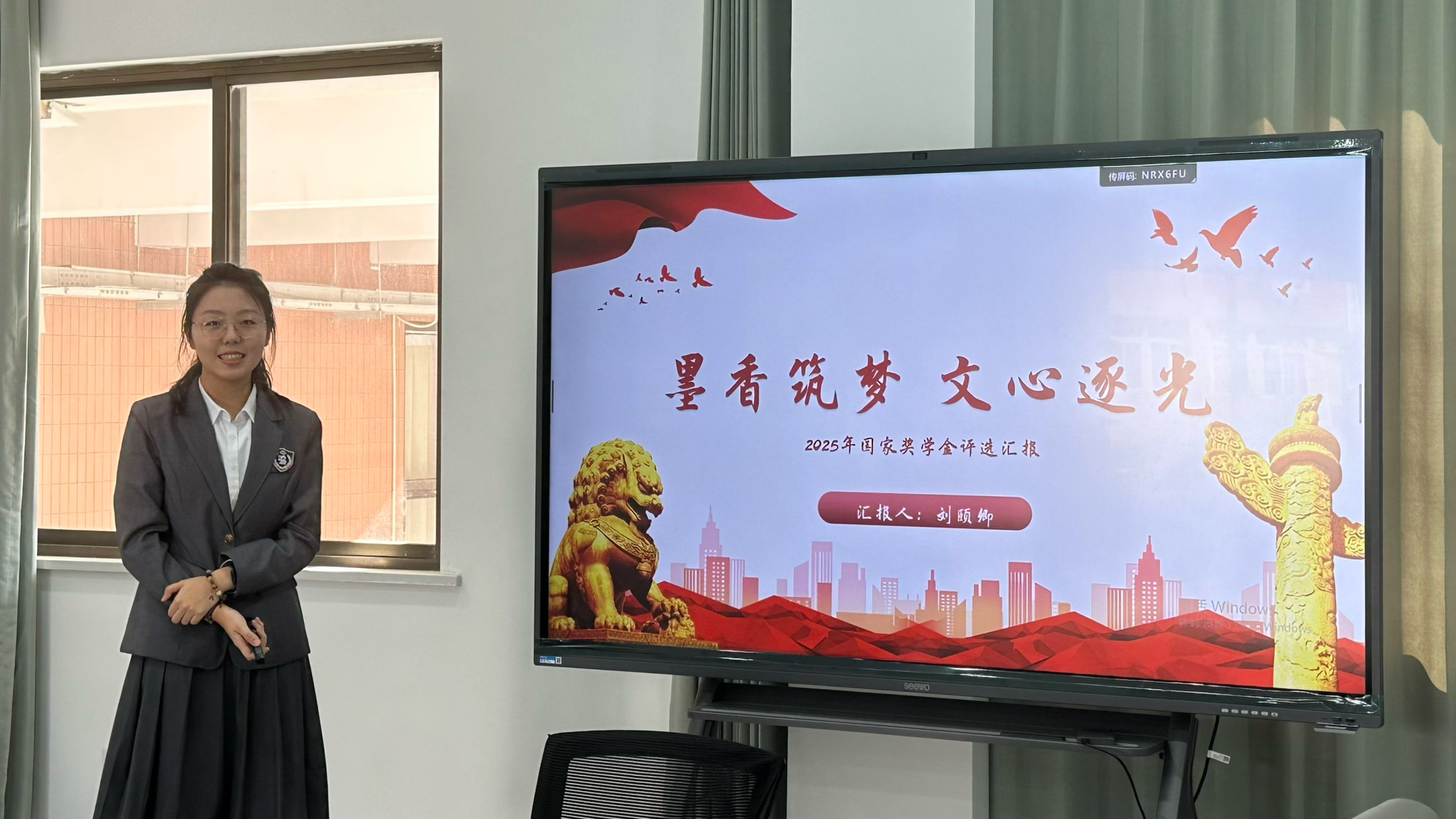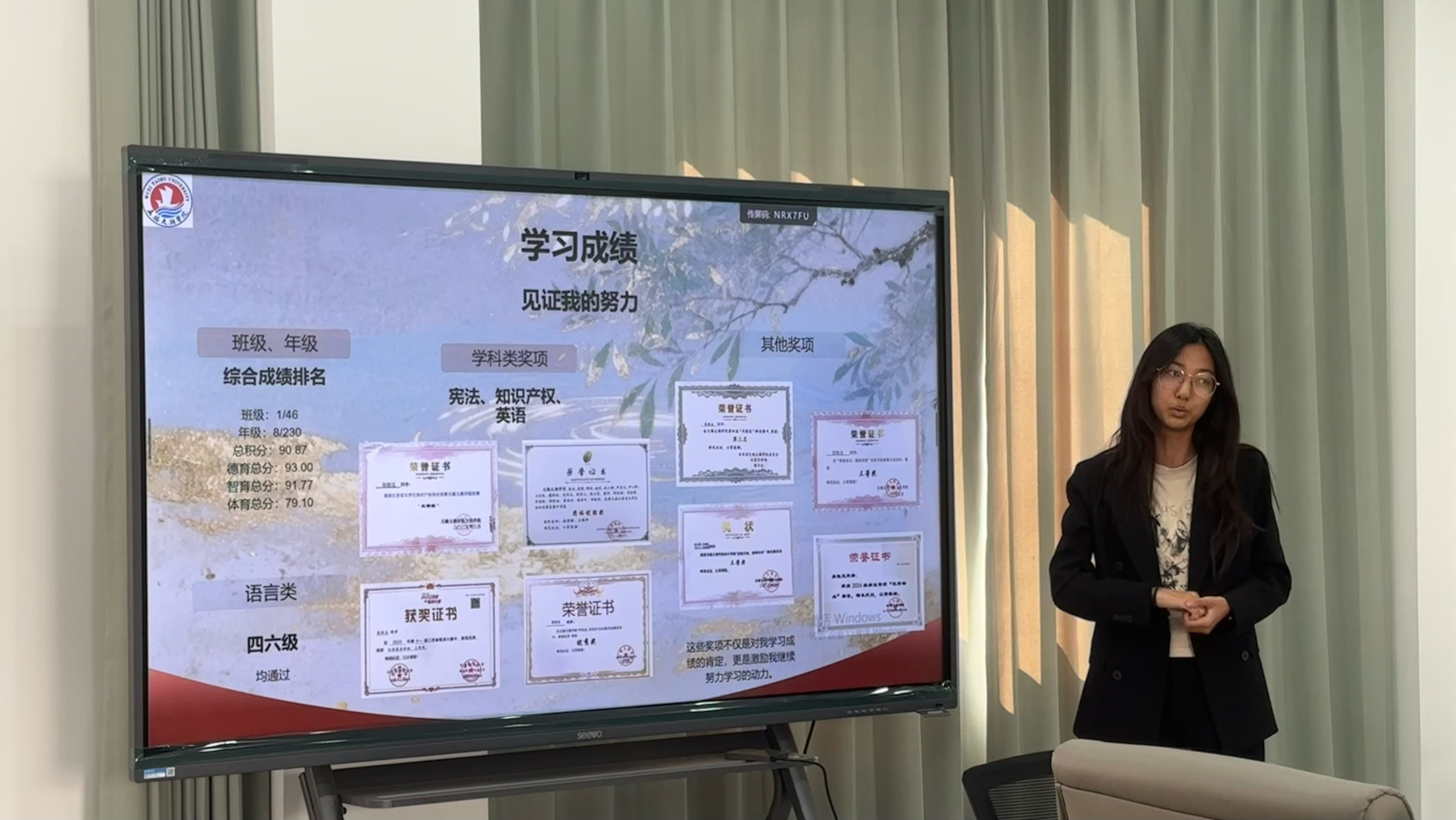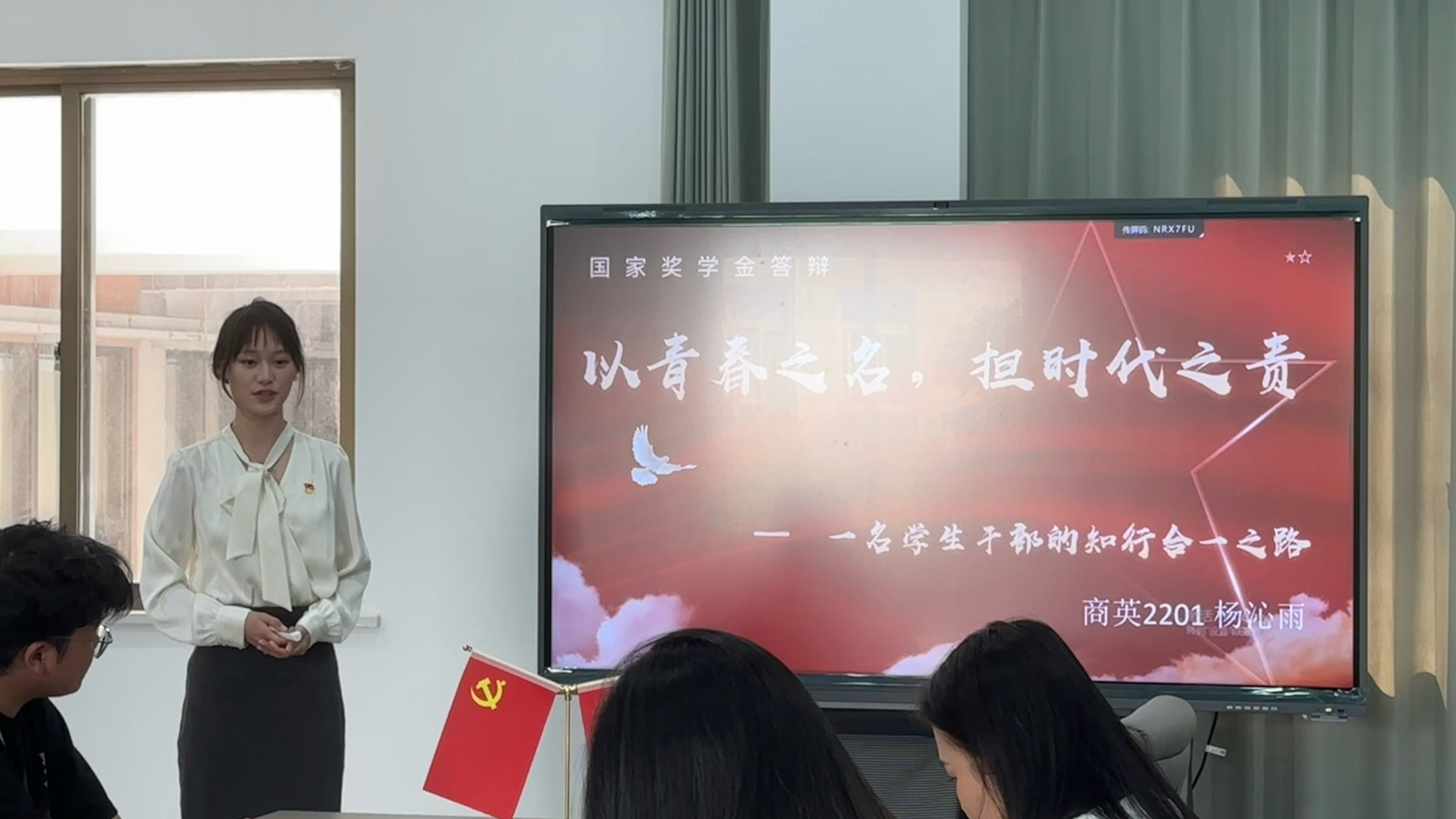 候选人们在有限的展示时间内,围绕思想表现、学业成绩、科研创新、社会实践及志愿服务等多个方面,全面展示了过去一学年乃至整个大学阶段的成长轨迹与突出成就。每一份成绩单上的高分、每一张荣誉证书的背后、抑或是每一段社会实践的经历,都凝聚着候选人不懈的努力与辛勤的汗水。活动最后,经评审团综合评议后决定,商英2201班杨沁雨同学成功晋级,将代表学院进入国家奖学金差额评审公开展示会的决赛环节。