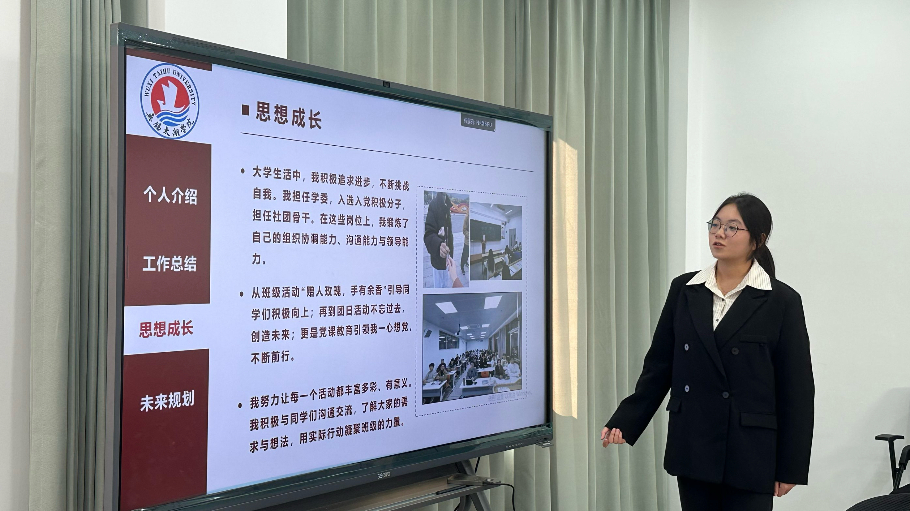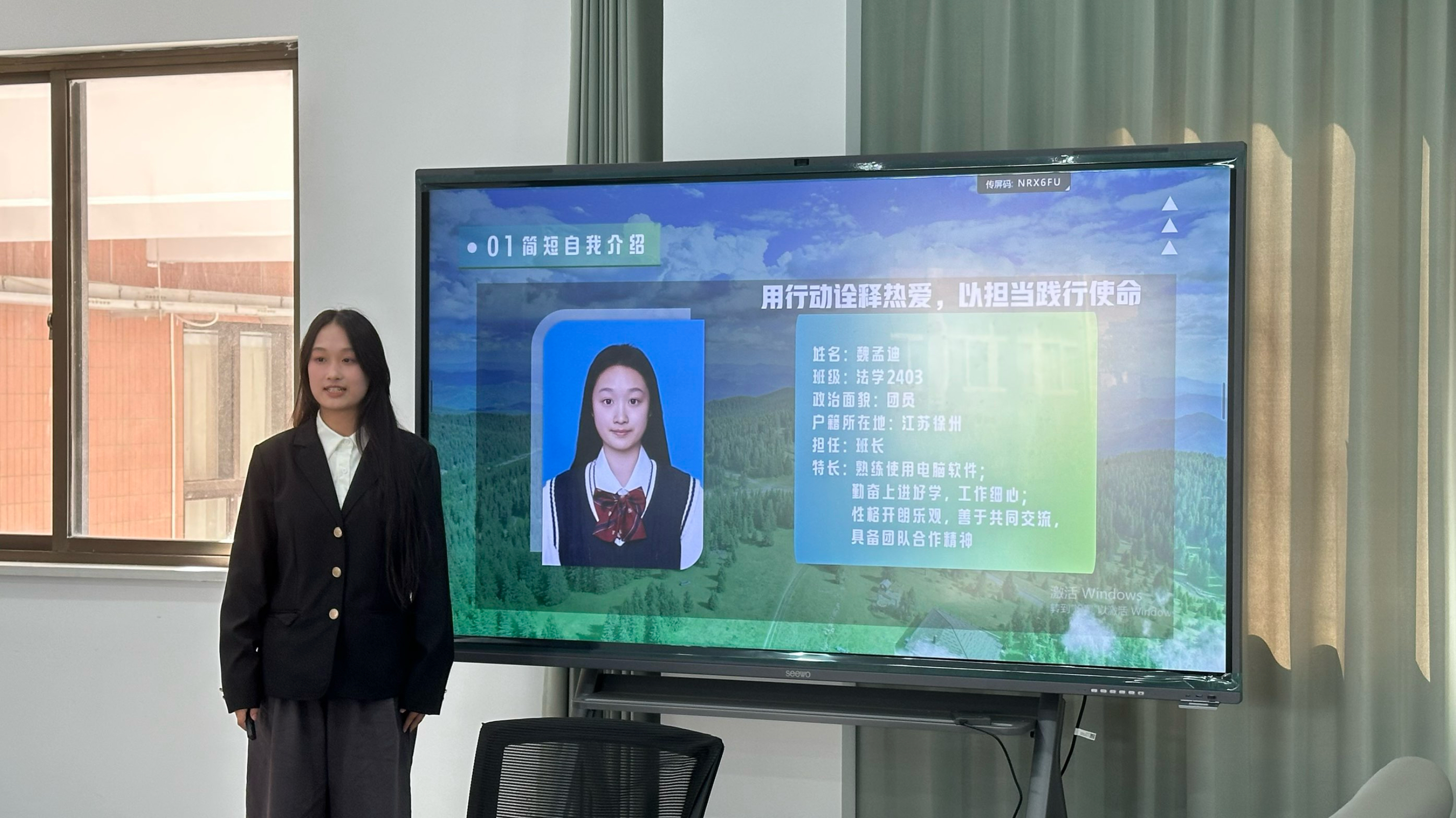 首先,各位候选人按顺序依次登台,结合事先准备的PPT进行个人陈述。台上,候选人们自信从容、侃侃而谈,或慷慨激昂,或沉稳内敛,以真挚的语言、详实的数据与生动的事例,讲述着追逐梦想、砥砺前行的青春故事。这些候选人中,既有绩点名列前茅、在学术期刊上发表论文的“学霸型”选手;也有活跃于各类学科竞赛、屡获国家级与省级大奖的“竞赛达人”;有投身社会实践与志愿服务、足迹遍布社区乡村的“公益先锋”;亦有在学生工作岗位上兢兢业业、服务同学的“骨干力量”。