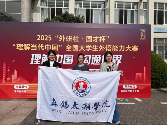 10月31日至11月2日,第27届“外研社·国才杯”“理解当代中国”全国大学生外语能力大赛江苏省赛区决赛在南京航空航天大学(将军路校区)隆重举行。我校两位选手陈思怡、姜惠在领队刘欣老师的带领下,沉着应战,发挥出色,通过对定题演讲“Strike the Waves”的独到见解,凭借标准流利的口语和从容稳健的台风,双双荣获江苏赛区本科中国学生组三等奖,为学校赢得荣誉。